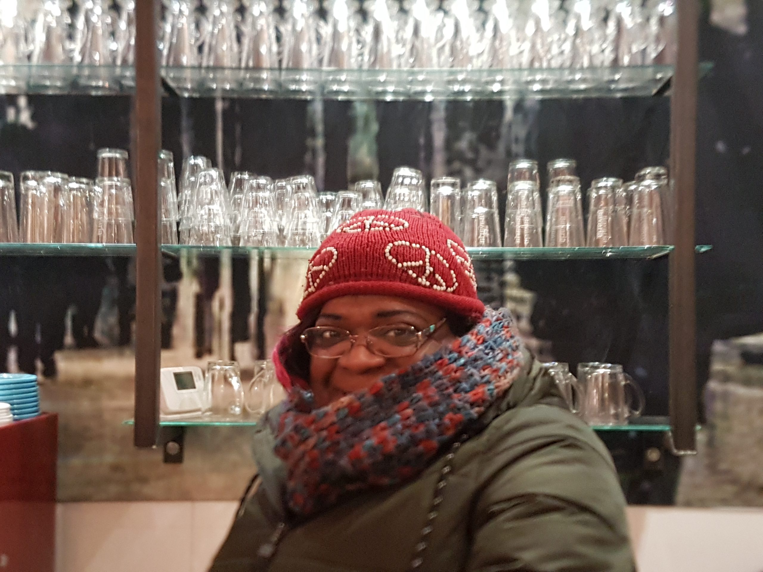 Winter 2020 in the Hague February 13, 2020February 13, 2020 Volunteer Elly from Curacao halting in a “social”restaurant in Keizerstraat The Hague. Peace is in your head ( and sometimes it shows)
